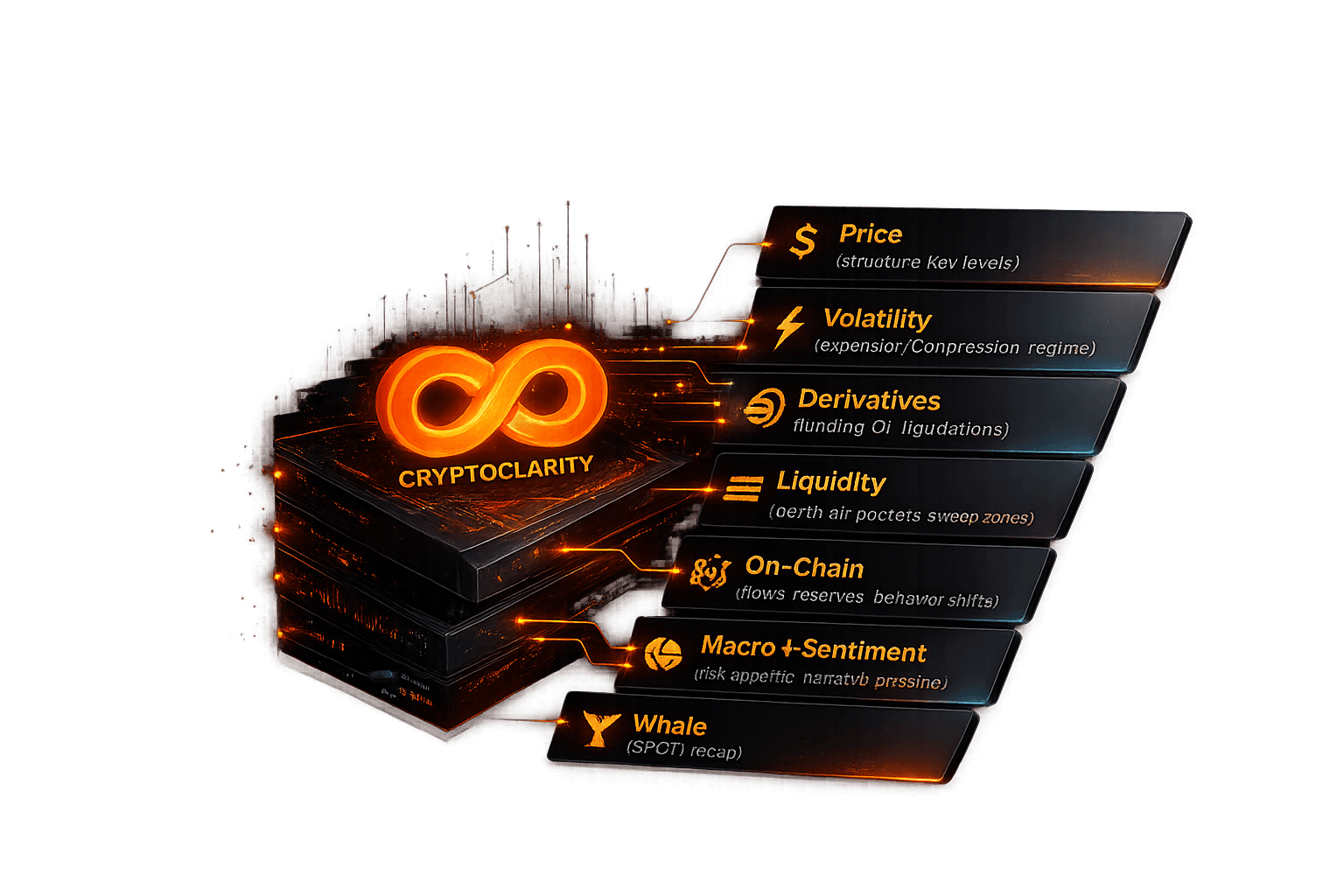 CryptoClarity continuously ingests, normalizes & scores multi-layer market data, so you’re not trading price alone.